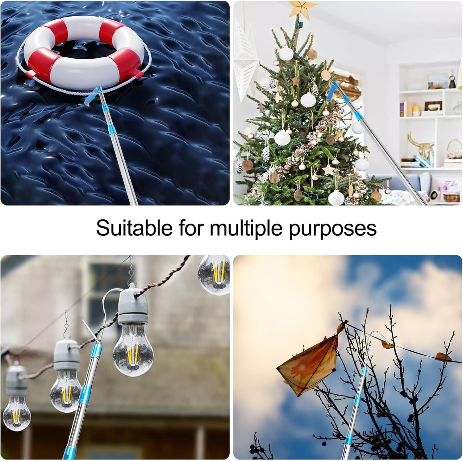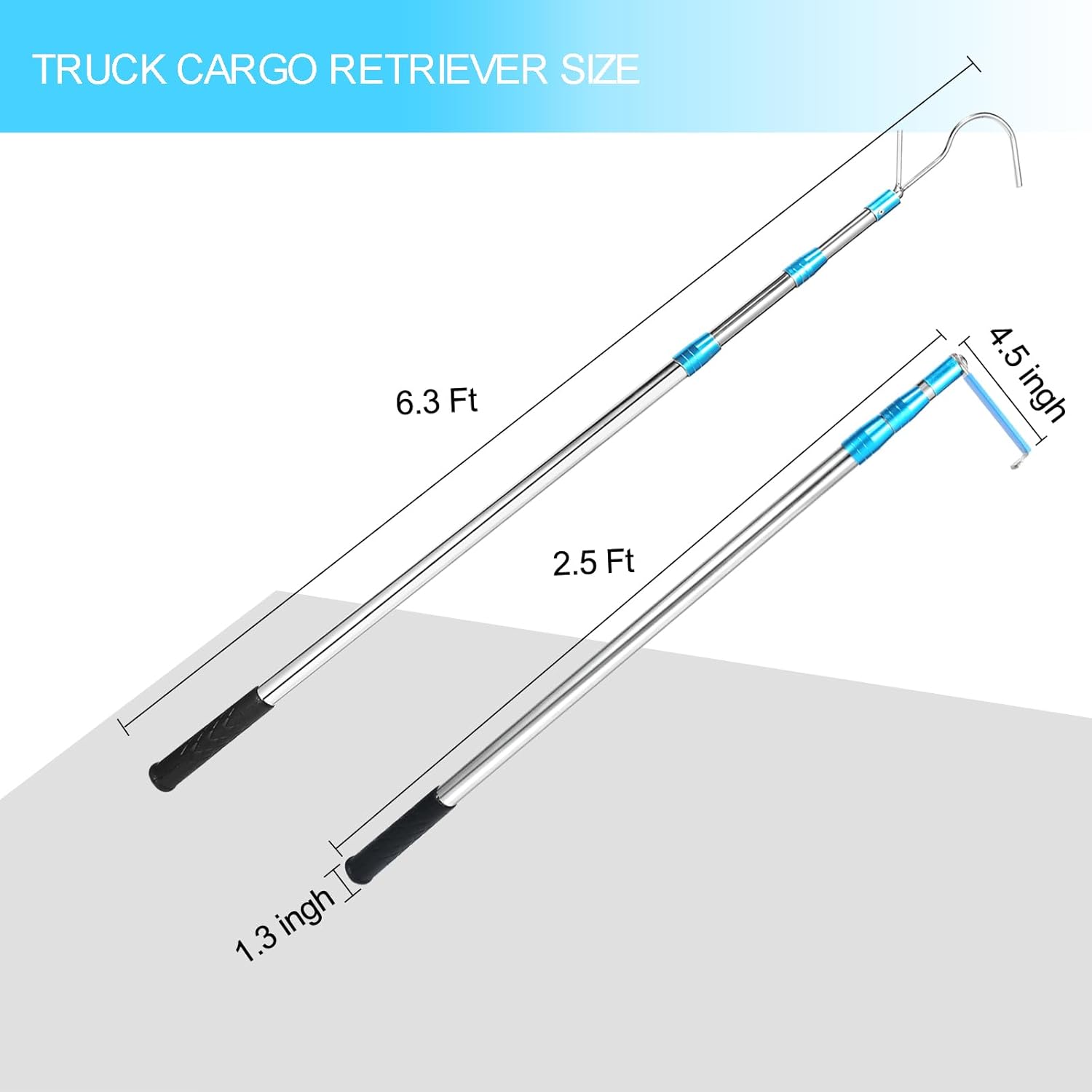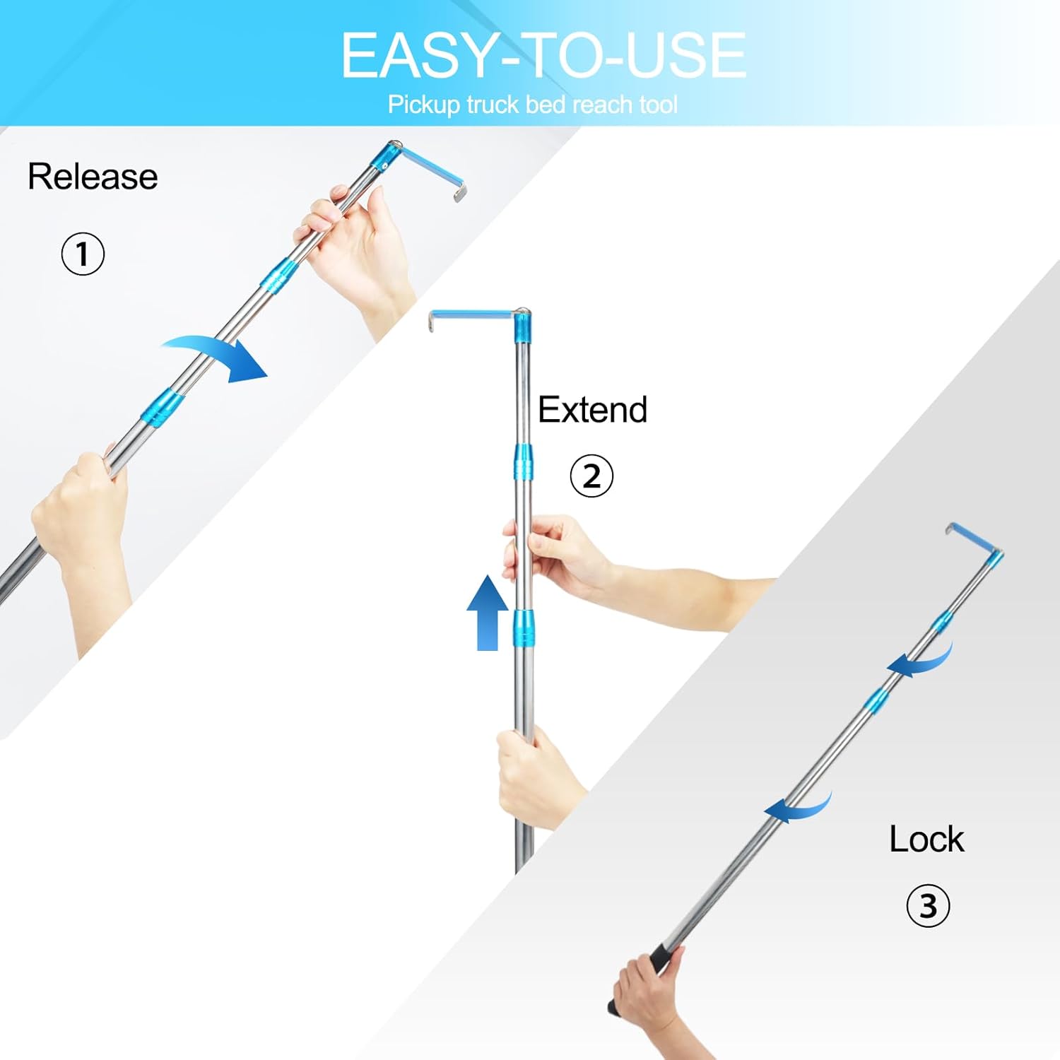 Multiple Uses: Telescoping pole with hook allows you to reach hard-to-reach areas in pickup truck, suv, heavy truck,trailers, RVs, boats, garages, inside home and etc, preventing injuries while climbing, making work easier