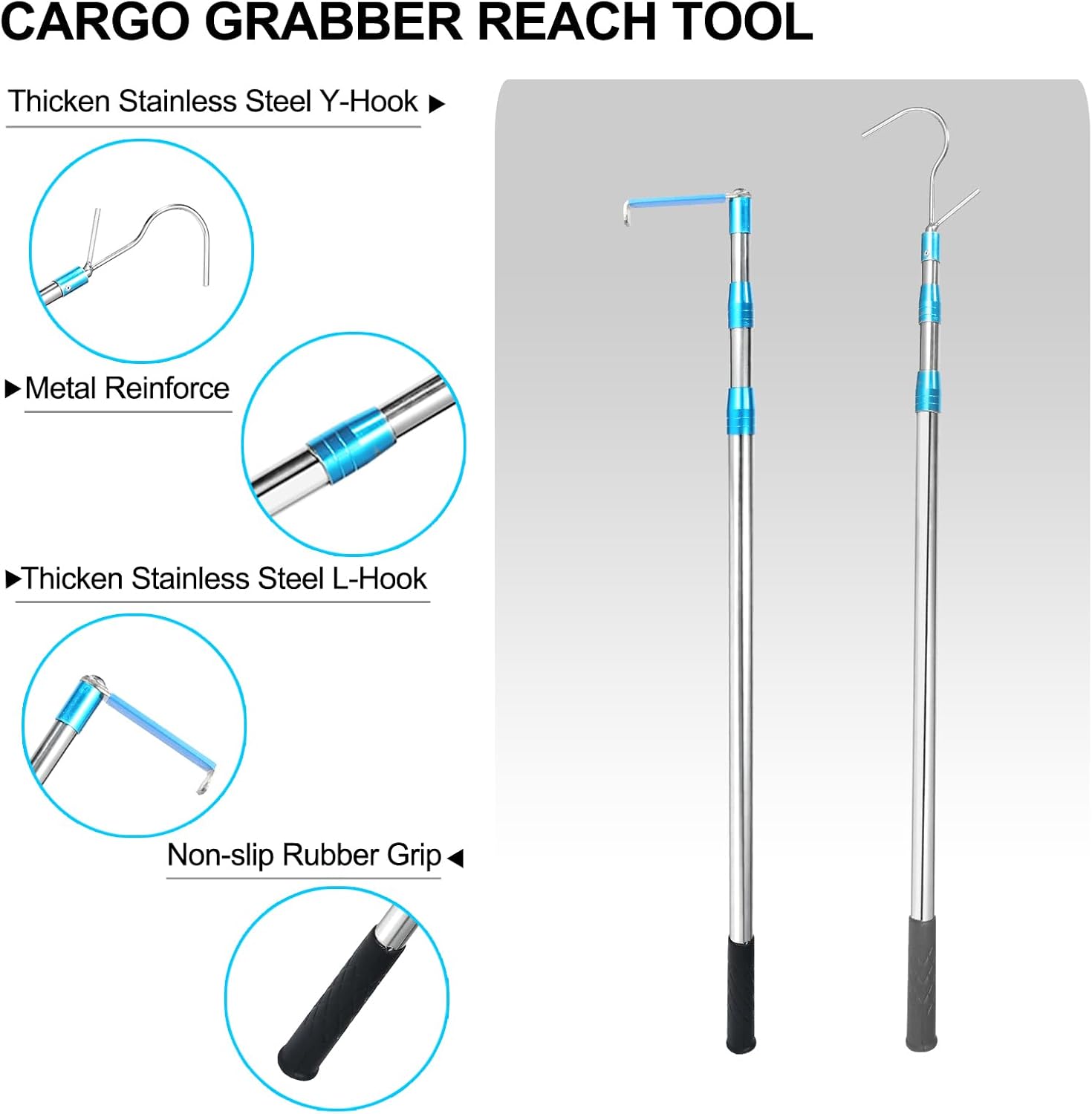 + Free ShippingCargo Grabber Reach Retriever: Simplify all of your hard-to-reach tasks by adjusting it to exactly the right length; lightweight, portable, and designed for ease of use; The package includes 1x telescoping pole, 1x Y-shaped hook, 1x L-shaped hook, assembly tools and a Portable storage bag